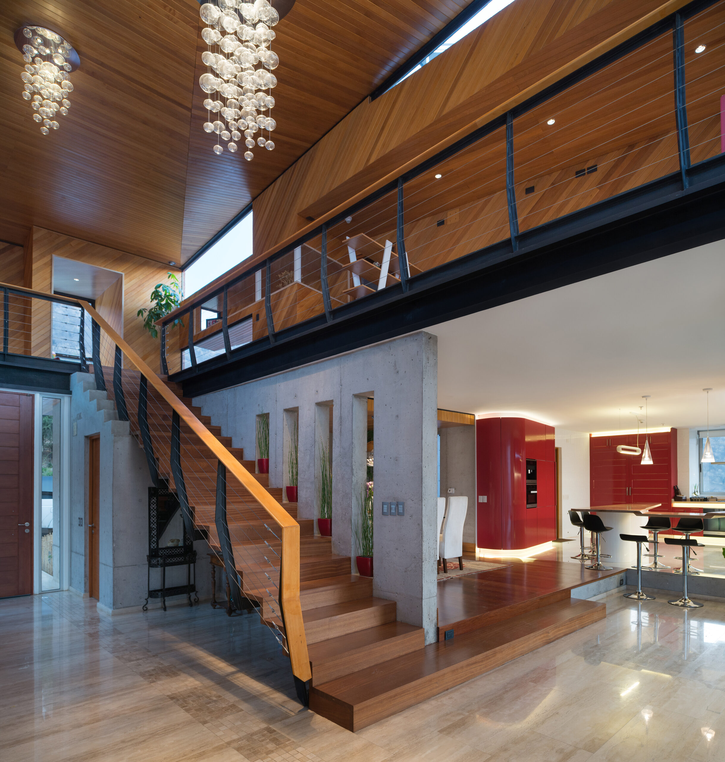 Una Casa diseñada por nosotros, requirió ciertas partidas especiales de las cuales nos hicimos parte, como el diseño y construcción de la cocina y comedor de diario. Cliente pidió el color rojo bermellón como el tono principal de la cocina; dejando todo el perímetro de la misma rodeado por estos muebles rojos curvos, y con una mesa central en forma de península de lenga patagónica. Rojo, Iluminación, naturalidad, hormigón y lenga.