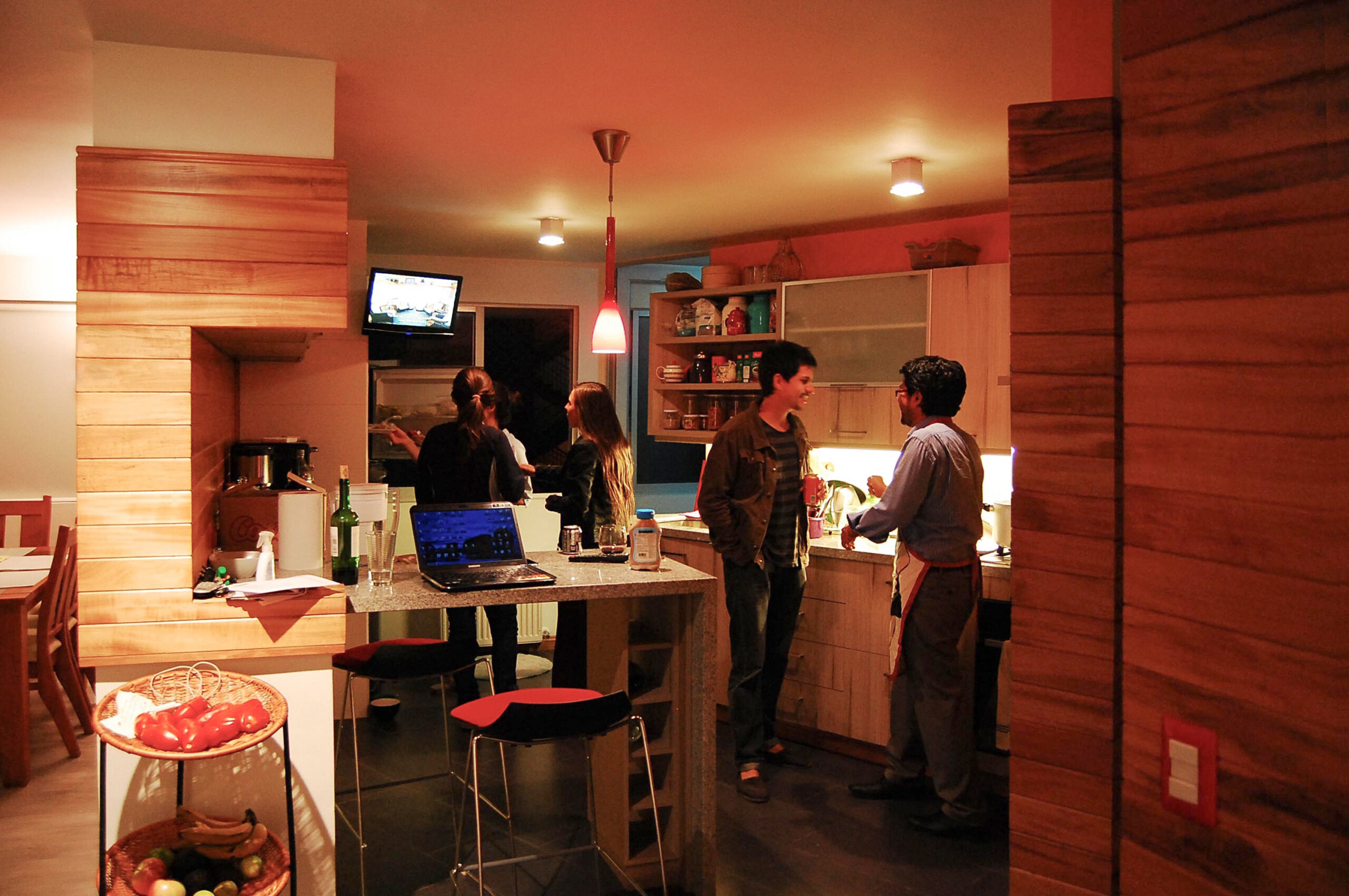 Se intervinieron tabiques y se integró el dormitorio de servicios a la cocina y comedor de diario. Se incorporó un muro diagonal para dejar una pequeña logia tras la cocina. Se le dio carácter de “masa” (volumen y extracciones), a los revestimientos de mañío al interior.